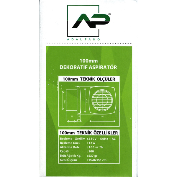 ASPIRATOR - VENTILATOR ZA KUPATILO fi100mm AD5078 Adal Pano