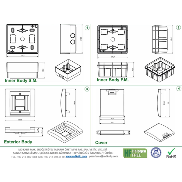 Ugradna elektro razvodna kutija za 4 modula izrađena od kvalitetnih ABS, HIPS i SAN materijala, namenjena za sigurnu distribuciju električnih instalacija. Sa IK10 otpornošću na udarce i nazivnim naponom od 690V predstavlja pouzdano rešenje za stambene i poslovne objekte.