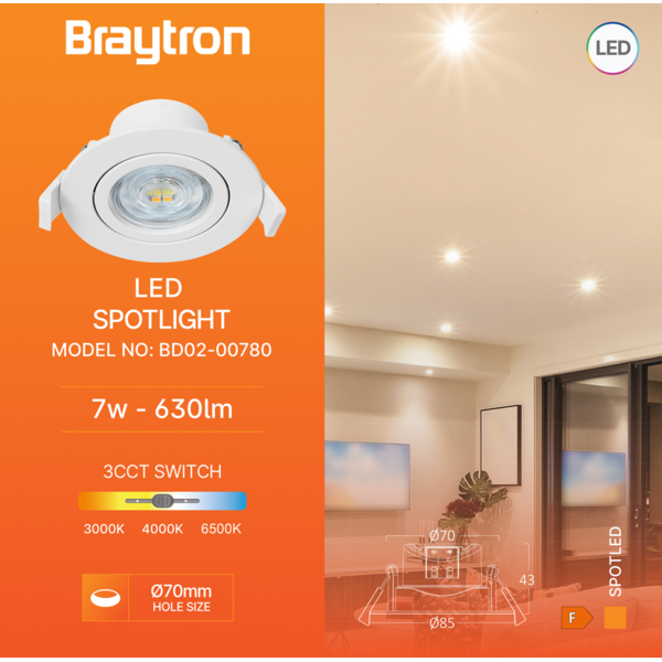 LED ROZETNA 7W 3CCT UGRADNA BELA OKRUGLA 3000/4000/6500K BD02-00780