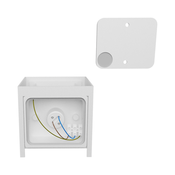 Zidna svetiljka modernog dizajna u beloj boji, namenjena za spoljašnju upotrebu. Sa IP54 zaštitom otporna je na vlagu i prašinu, idealna za osvetljenje fasada, terasa i ulaza. Predviđena za G9 sijalicu (do 10W), izrađena od aluminijuma i stakla za dug vek trajanja i elegantan izgled.