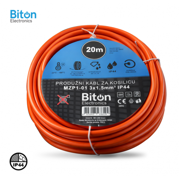 Produžni kabl za kosilicu MZP1-01 dužine 20 metara pruža veću slobodu kretanja tokom rada u dvorištu. IP44 zaštita omogućava bezbednu upotrebu na otvorenom.