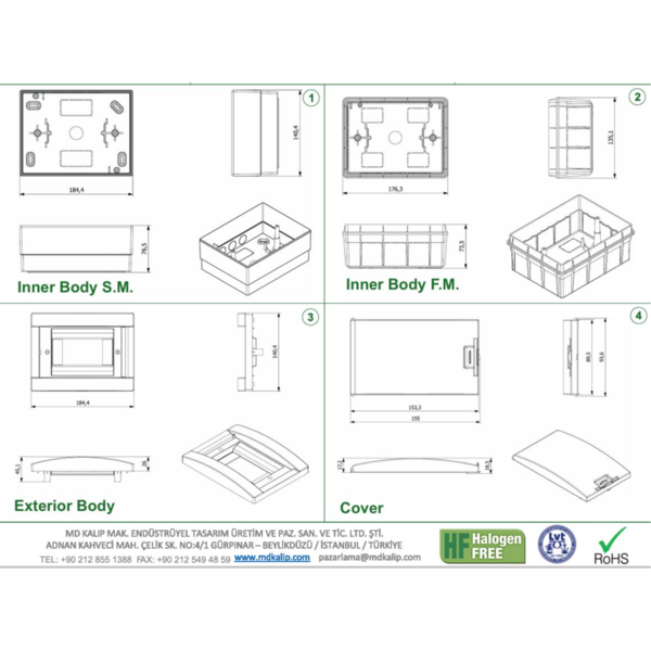 EP-6N RAZVODNA TABLA 6 OSIGURACA NAZIDNA EP220176 Eraplast Dimenzije: 180x140x101mm Proizvođač: Eraplast elektrik Zemlja porekla: Turska Materijal: ABS termoplastika Radna temperatura: -15 °C do +60°C IP zaštita: IP40 Rok upotrebe: neograničen Uvoznik za Srbiju: EURO IMPEX D.O.O. 18000 Niš, Srbija +381 18 513564, +381 18 255141, +381 62 513564