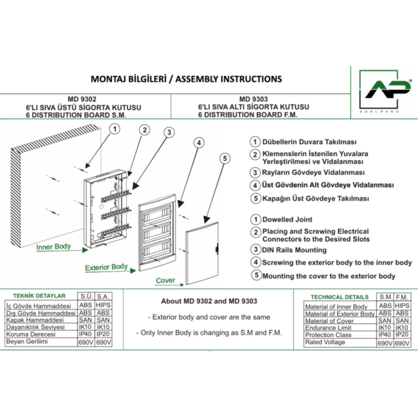 RAZVODNA TABLA 6 OSIGURACA NAZIDNA 184×99,5×140mm MD9302 Adal pano