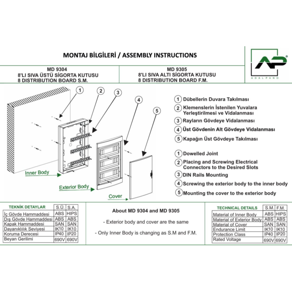 RAZVODNA TABLA 8 OSIGURACA UZIDNA 220x100x169mm MD9305 Adal Pano