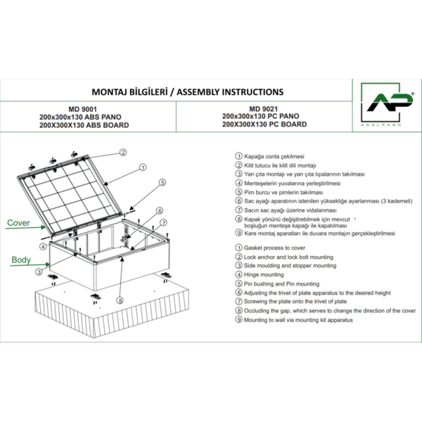 RAZVODNI ORMAN 200x300x130mm IP65 ABS MD9001 Adal Pano