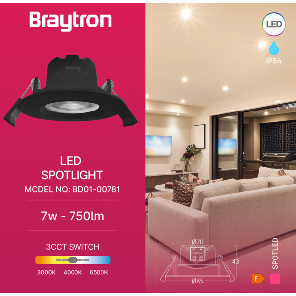 LED ROZETNA 7W 3CCT CRNA OKRUGLA IP54 3000/4000/6500K BD01-00781