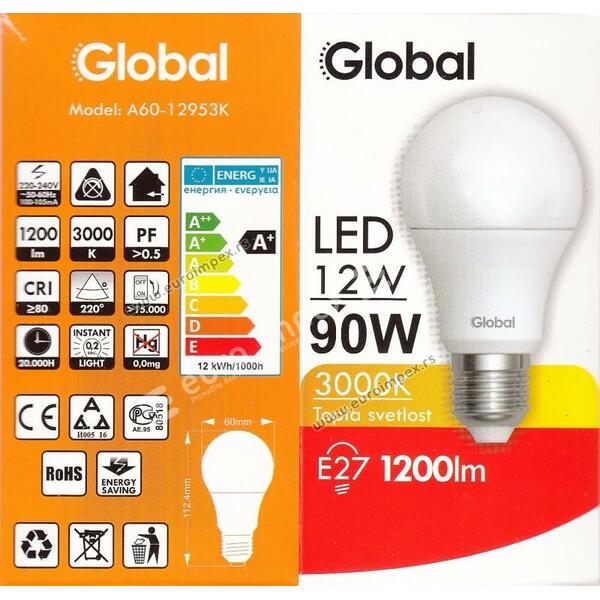 LED SIJALICA 12W E27 3000K toplo bela A60-12953K GLOBAL